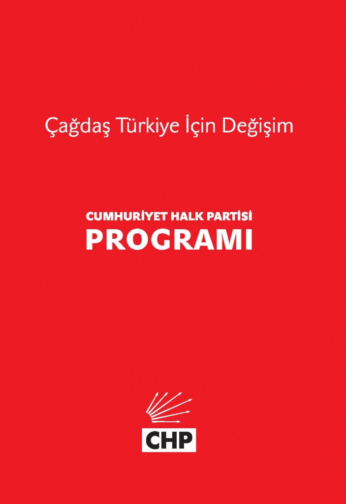 “Cumhuriyet Halk Partisi, başta Kurtuluş Savaşımız olmak üzere Aydınlanma ideallerini, emek mücadelelerini, sosyal demokrasinin özgürlük, eşitlik ve dayanışma ilkelerini benimseyen çağdaş demokratik sol bir siyasal partidir.”